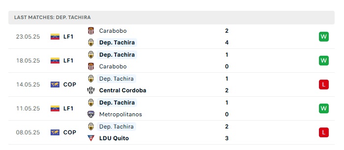 - Phong độ gần đây Deportivo Tachira