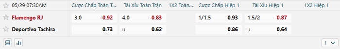 Bảng tỷ lệ kèo bóng đá hôm nay Flamengo vs Deportivo Tachira
