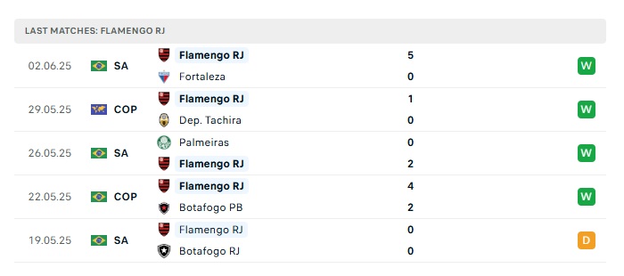 - Phong độ gần đây Flamengo