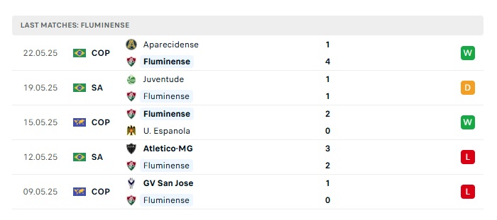• Phong độ gần đây Fluminense