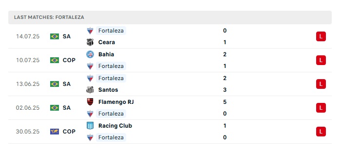 - Phong độ gần đây Fortaleza