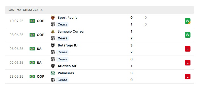 Hiện tai, phong độ thi đấu của chủ nhà Fortaleza cũng đang vô cùng tệ. Tính trong 4 trận đấu gần nhất của mình, đội bóng này chỉ thắng 1 và còn lại là thua 4. Trong khi đó thì Ceara lại đang chơi cực kỳ ổn với 2 thắng, 2 thua và chỉ hòa 1 trong 5 trận đấu gần đây nhất của mình. Do đó các chuyên gia đều khẳng định rằng Ceara hôm nay đủ sức giữ lại cho mình 1 điểm tại sân của đối thủ hoặc nếu may mắn thì họ có thể thắng.