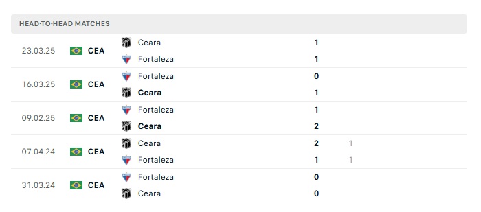 - Kèo tỷ số H2 Fortaleza vs Ceara: 0-0