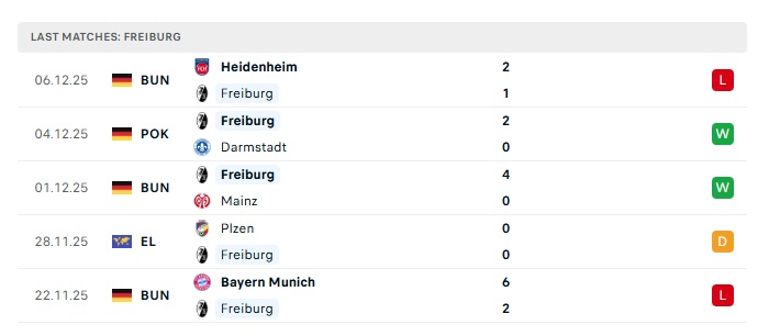 Freiburg: Muller; Sildillia, Ginter, Lienhart, Gunter; Eggestein, Osterhage; Doan, Dinkci, Grifo; Holer.
