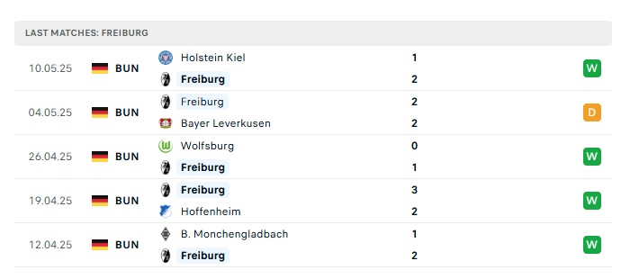 - Phong độ gần đây Freiburg