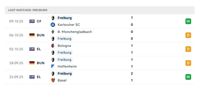 • Phong độ gần đây Freiburg