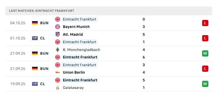 • Phong độ gần đây Frankfurt