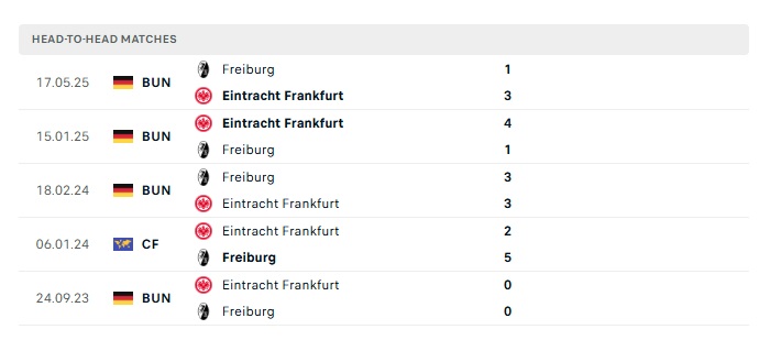 Lịch sử đối đầu Freiburg vs Frankfurt