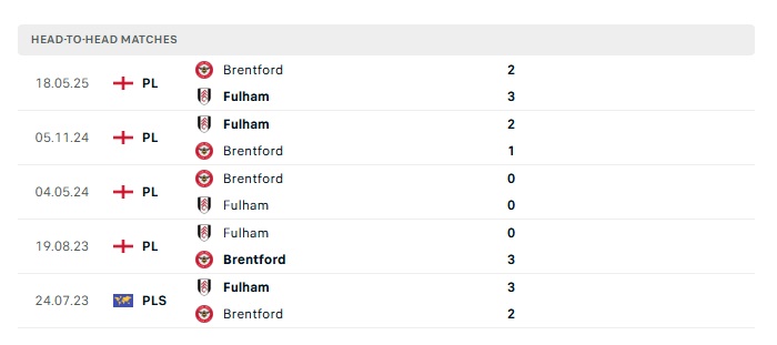 • Kèo tỷ số H2 Fulham vs Brentford: 1-0