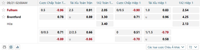 Soi kèo châu Á, kèo Fulham vs Brentford