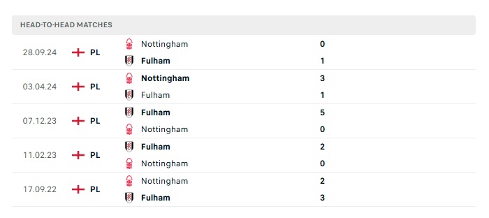 Lịch sử đối đầu Fulham vs Nottingham Forest
