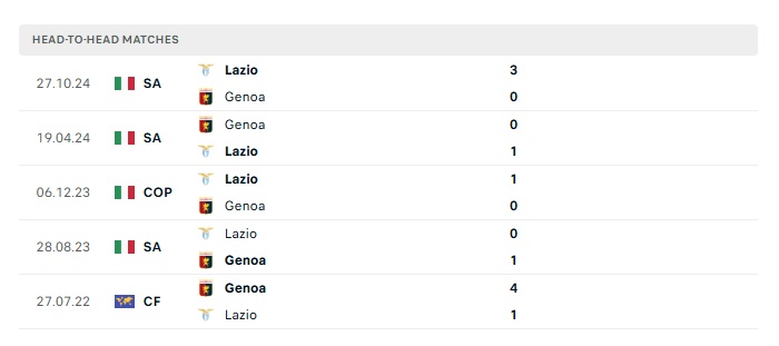 Phong độ gần đây Genoa vs Lazio