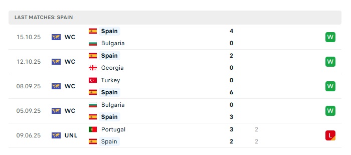Phong độ gần đây Georgia vs Tây Ban Nha