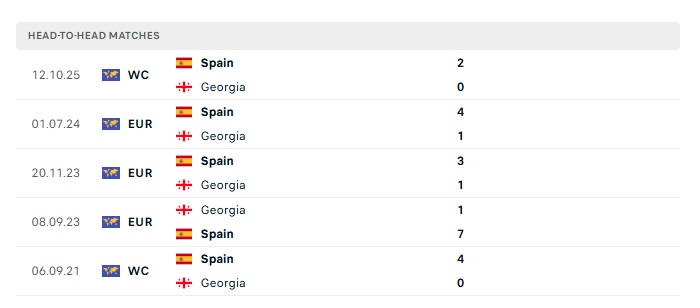 Lịch sử đối đầu Georgia vs Tây Ban Nha