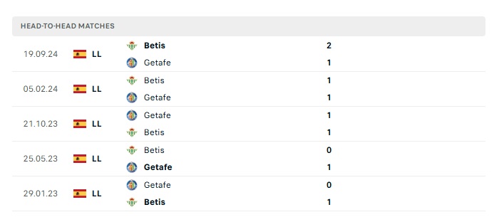 Lịch sử đối đầu Getafe vs Real Betis