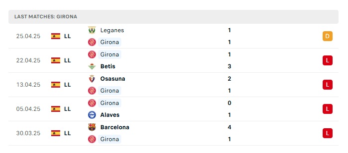 • Phong độ gần đây Girona