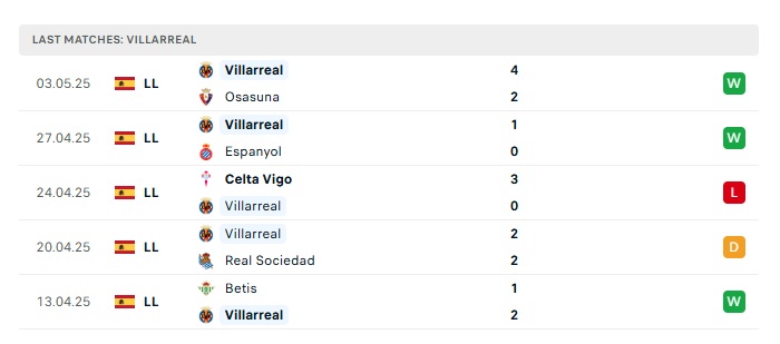 • Phong độ gần đây Villarreal