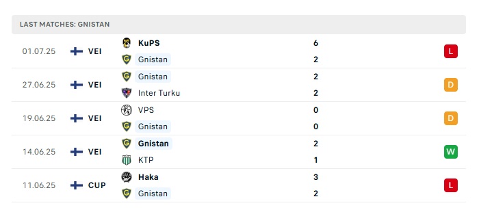 Theo đánh giá từ các chuyên gia, phong độ thi đấu của hai đội trong thời gian qua đang không hề tốt như mong đợi. Trong 5 trận gần nhất của Gnistan, họ được ghi nhận chỉ có 1 thắng, 2 hòa và 2 thua trong 5 trận đấu gần nhất. Trong khi đó thì Haka lúc này đang có cho mình 1 thắng 1 hòa và 3 thua trong 5 trận gần nhất. Vậy nên xét về chuyên môn thì Gnistan vẫn có khả năng giành về cho mình 3 điểm.