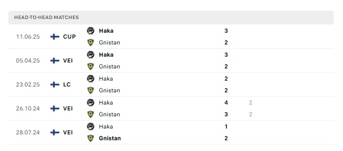 - Kèo tỷ số H2 Gnistan vs Haka: 1-0