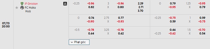 Soi kèo châu Á, kèo Gnistan vs Haka