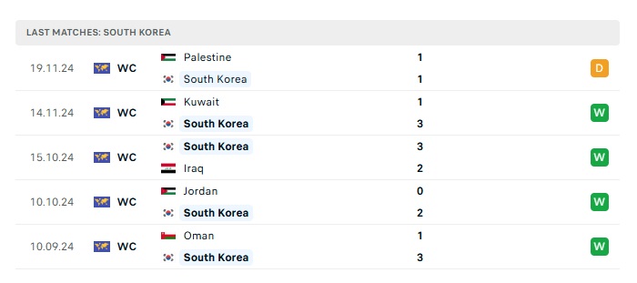 - Phong độ gần đây Hàn Quốc