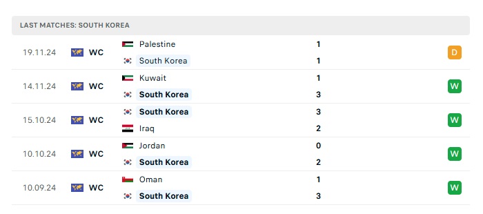 • Phong độ gần đây Hàn Quốc