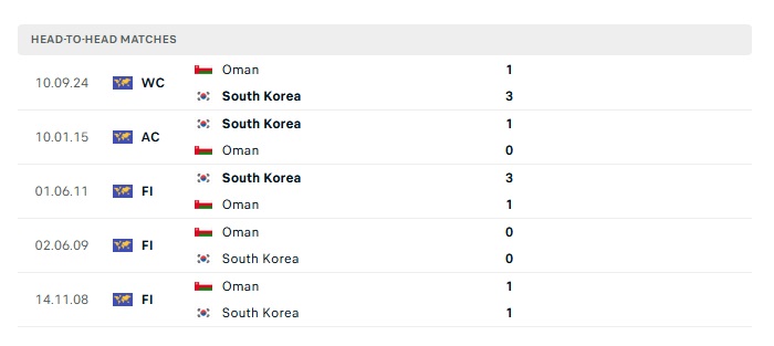 Phong độ gần đây Hàn Quốc vs Oman