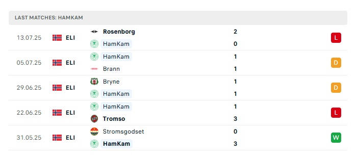 Phong độ gần đây Haugesund vs HamKam