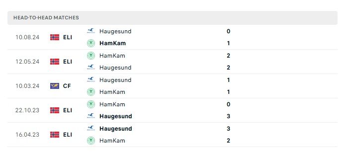 Lịch sử đối đầu Haugesund vs HamKam