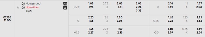 Bảng tỷ lệ kèo nhà cái Haugesund vs HamKam