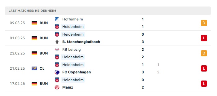 Phong độ gần đây Heidenheim vs Holstein Kiel