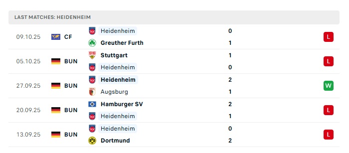 Phong độ gần đây Heidenheim vs Werder Bremen