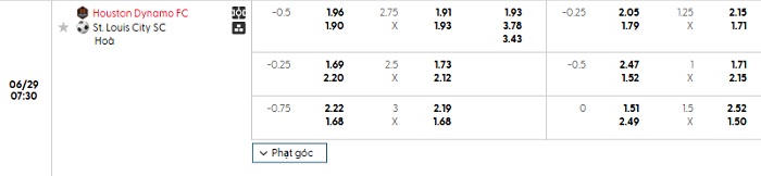 - Kèo tỷ số H1 Houston Dynamo vs St. Louis City SC: 1-0