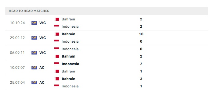 Hiện tại, Indonesia đang có phần bị đánh giá thấp hơn đối thủ về phong độ thi đấu gần đây. Theo ghi nhận trong 8 trận đấu gần nhất của Indonesia, họ chỉ có được 2 chiến thắng, 1 hòa và thua đến 5. Trong khi đó thì Bahrain lúc này đã thắng 4, hòa 1 và chỉ thua 2 trong 7 trận đấu gần nhất. Do đó, dù phải làm khách ngày hôm nay nhưng Bahrain vẫn rất tự tin sẽ có được cho mình 1 điểm.