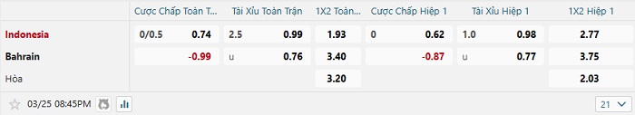 Bảng tỷ lệ kèo bóng đá Indonesia vs Bahrain