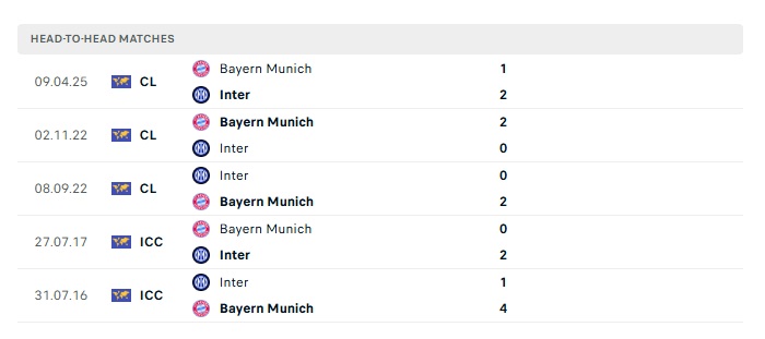 Lịch sử đối đầu Inter Milan vs Bayern Munich