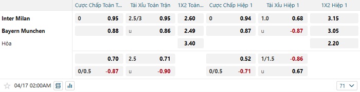 Soi kèo châu Á, kèo Inter Milan vs Bayern Munich