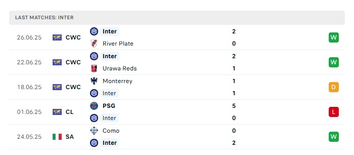 Phong độ gần đây Inter Milan vs Fluminense