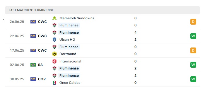 - Phong độ gần đây Fluminense