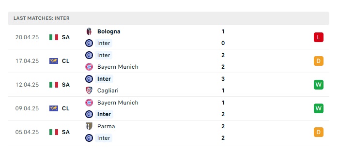 - Phong độ gần đây Inter Milan
