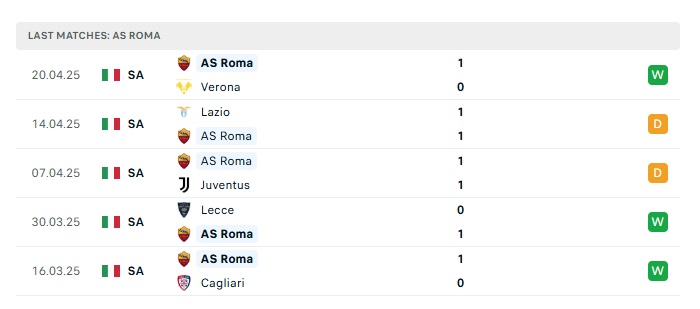 - Phong độ gần đây Roma
