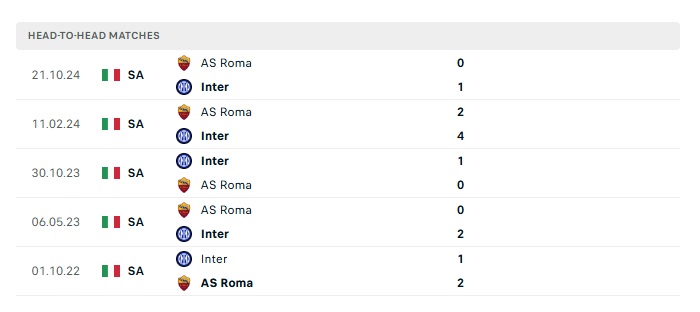 Phong độ gần đây Inter Milan vs Roma