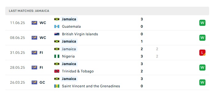 Dựa vào các thông tin được ghi nhận thì phong độ của Jamaica hiện đang áp đảo toàn diện trước Guatemala. Trong 8 trận gần nhất của Jamaica, họ được ghi nhận đã có 5 chiến thắng, 2 hòa và còn lại là 1 trận thua. Trong khi đó thì Guatemala lúc này đang có 3 thắng, 3 thua và 1 hòa trong 7 trận gần nhất. Do đó, Jamaica hôm nay tự tin sẽ có cho mình 3 điểm cùng 1 chiến thắng áp đảo.