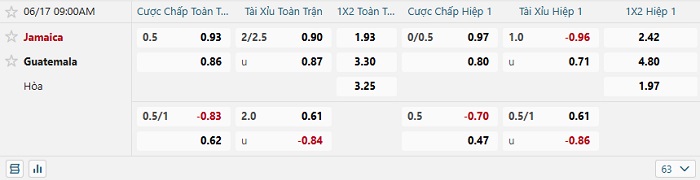 Soi kèo châu Á, kèo Jamaica vs Guatemala