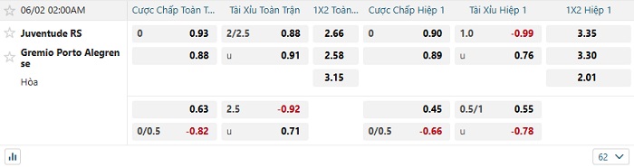 Soi kèo châu Á, kèo Juventude vs Gremio