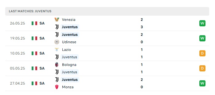 Phong độ gần đây Juventus vs Wydad Casablanca