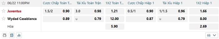 Bảng tỷ lệ kèo bóng đá Juventus vs Wydad Casablanca