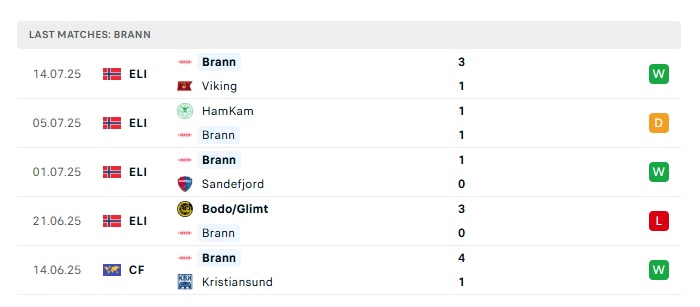 - Phong độ gần đây Brann