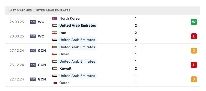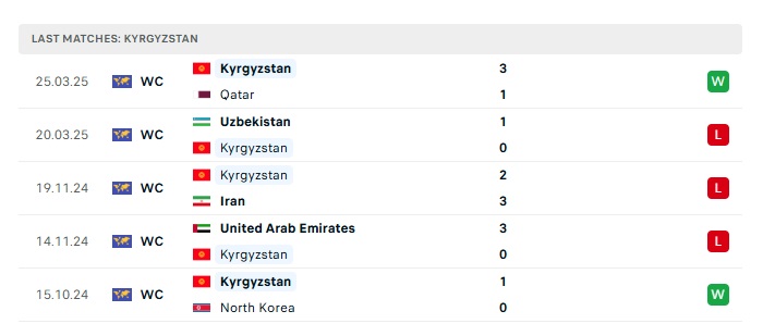 Phong độ gần đây Kyrgyzstan  vs UAE