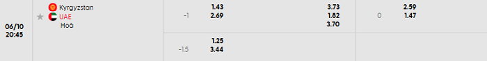 • Kèo tỷ số H1 Kyrgyzstan vs UAE: 0-1